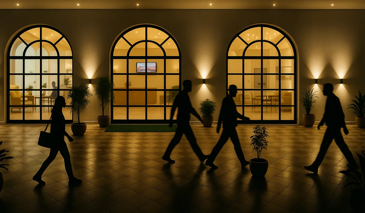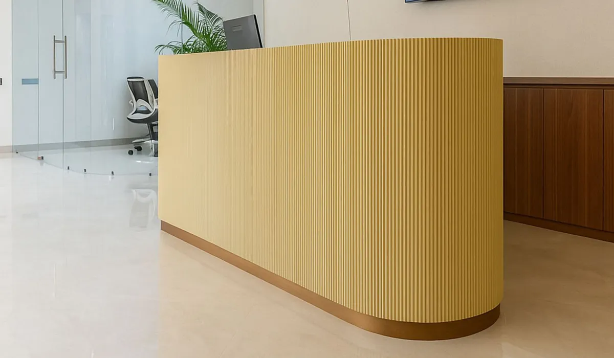 This space is envisioned as a grand yet welcoming reception lounge, where curves, light, and height define the architectural character.